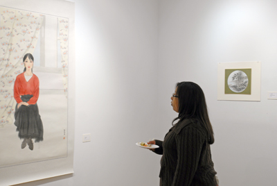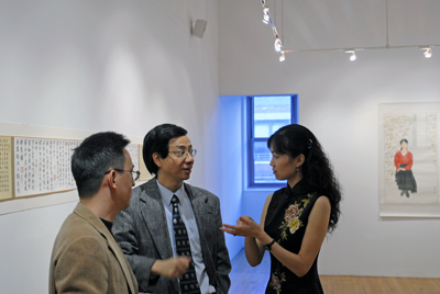Macy Art Gallery’s Exhibition “Chinese Flavor: A Collection of Zheng Qinyan’s Landscape Paintings and Calligraphic Works,” held its closing reception on October 3rd. Professor of Education Mun Tsang (left) from the International and Transcultural Studies Department learned techniques from the artist (center) Zheng Qinyan.