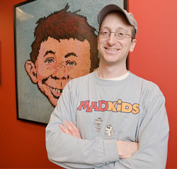 In return, he says, the things he's learned at TC under professors such as Barbara Tversky, Charles Kinzer and John Black help him at MAD. "Knowing the academic research that's been done about how people synthesize words and pictures make me appreciate what I see in the comic book world all the more, and it helps me spot when something isn't working and why. I don't deal with artists by saying, - 'well, the research shows this' - but it helps me on another level."