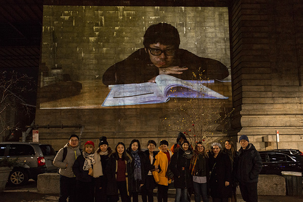 In early December, 11 TC students projected videos about the concept of home onto the side of the Manhattan Bridge