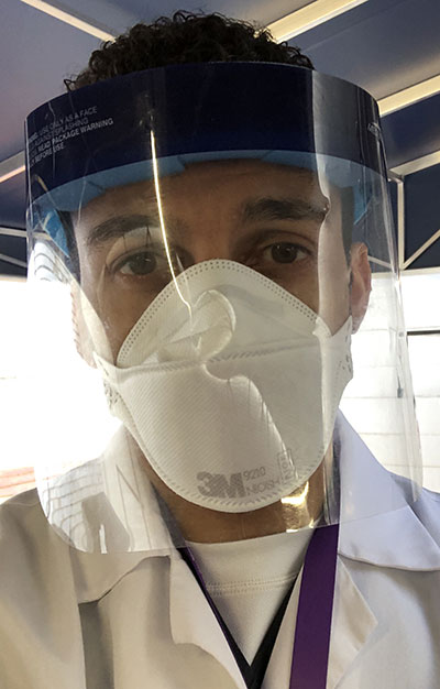 “You see stuff on the news, but being there in person, you realize that the patients are by themselves, in the ICU, on a ventilator,” he says. “Many of them die alone. It’s so hard. And you can’t really comfort them. They can’t see your expression through the PPE, only your eyes.”