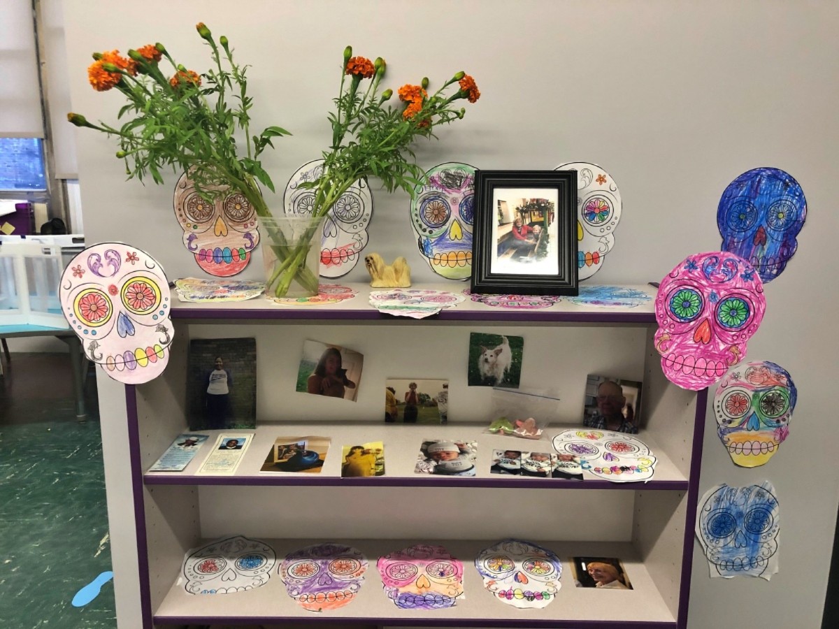 INCLUSIVE LEARNING Departing from more typical classroom experiences, the Teacher Opportunity Corps encourages educators to create culturally diverse classroom experiences. For Roxana Ochoa (M.A. ’20), that included having students celebrate “El Dia de los Muertos” in the classroom. (Photo courtesy of Ochoa)