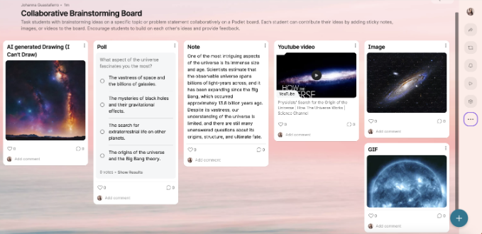 - Collaborative Brainstorming Board: Task students with brainstorming ideas on a specific topic or problem statement collaboratively on a Padlet Board. Each student can contribute their ideas by adding sticky notes, images, or videos. Encourage students to build on each other's ideas and provide feedback.