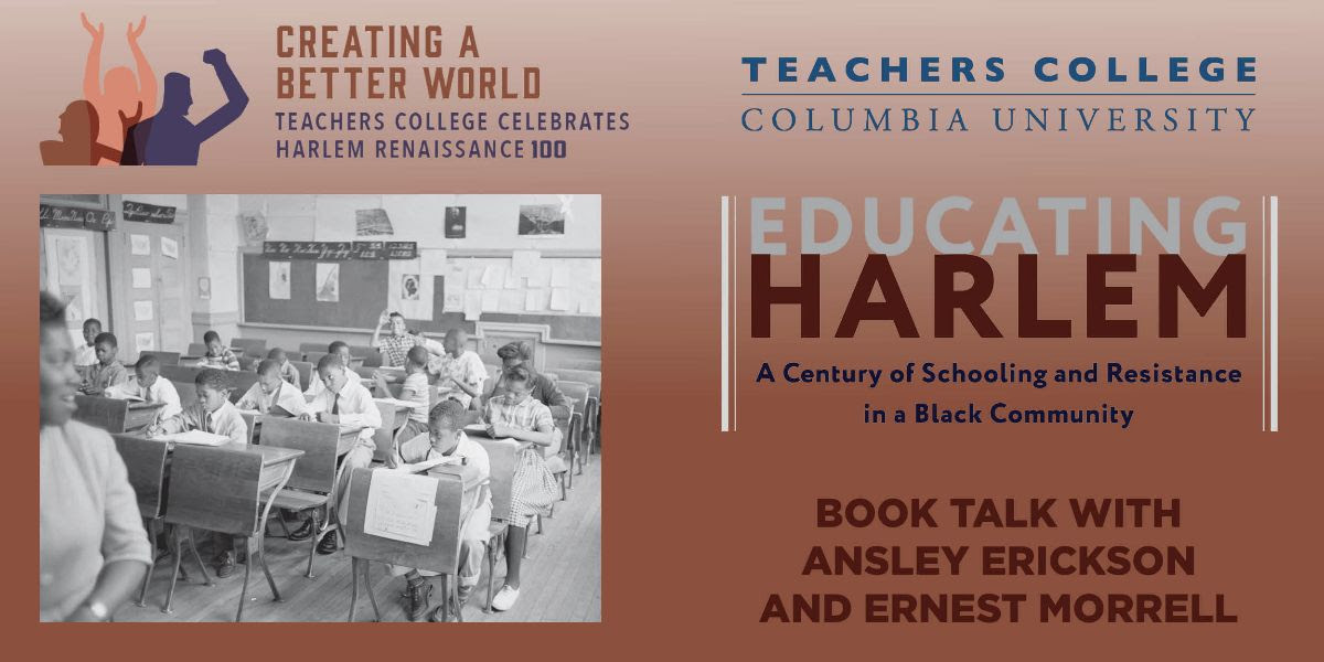 Co-editors Ansley Erickson and Ernest Morrell lead a conversation about their newly-published edited volume on the history of education in Harlem. With past and present in dialogue, a panel of educators and activists engaged in schooling today will respond to the book and speak about its meaning for their work in Harlem and beyond.