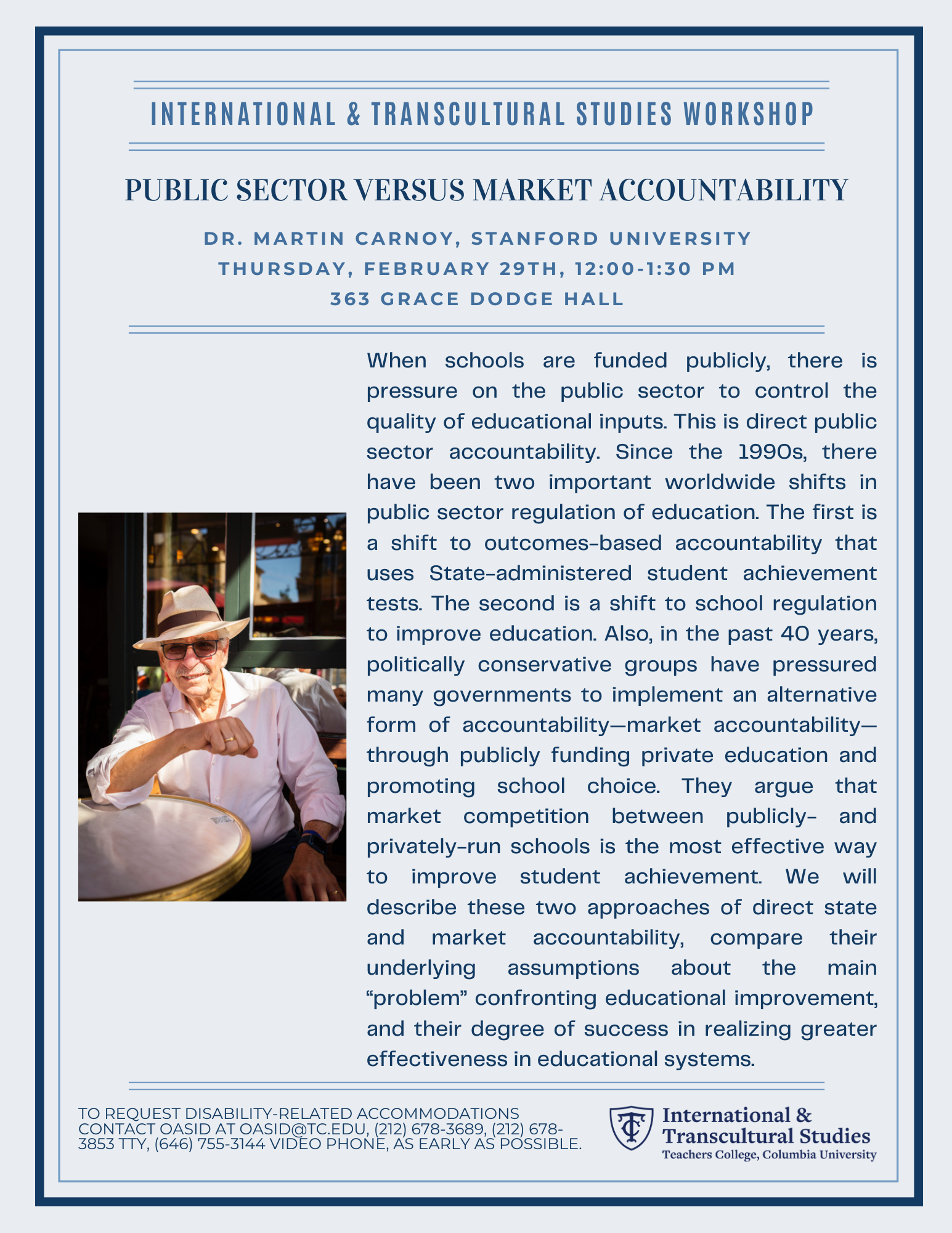 ITS Workshop with Martin Carnoy: "Public Sector Versus Market Accountability"
