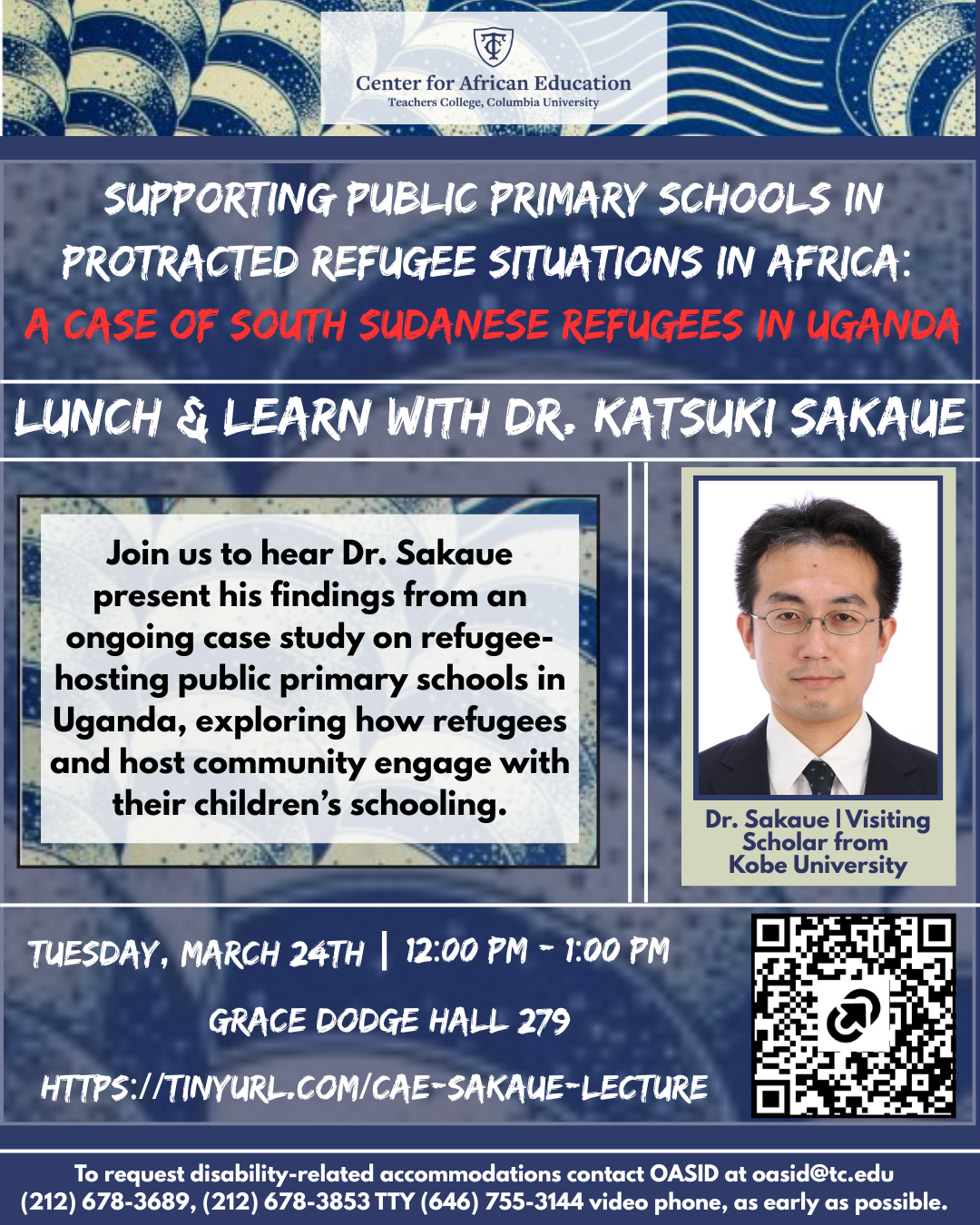 Lunch & Learn: With Dr. Katsuki Sakaue on Supporting Public Primary Schools in Protracted Refugee Situations in Africa