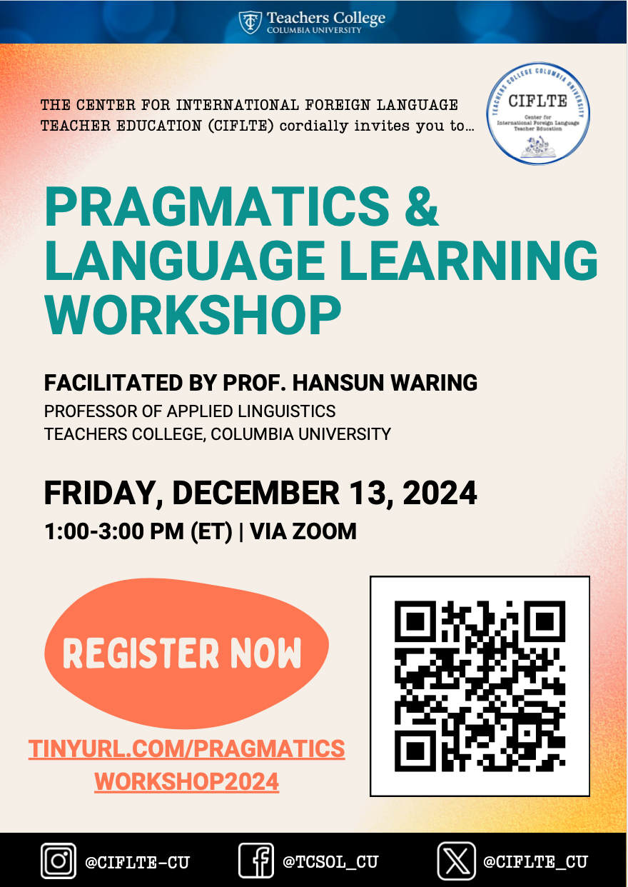 Pragmatics and Language Learning Workshop by Prof. Hansun Waring