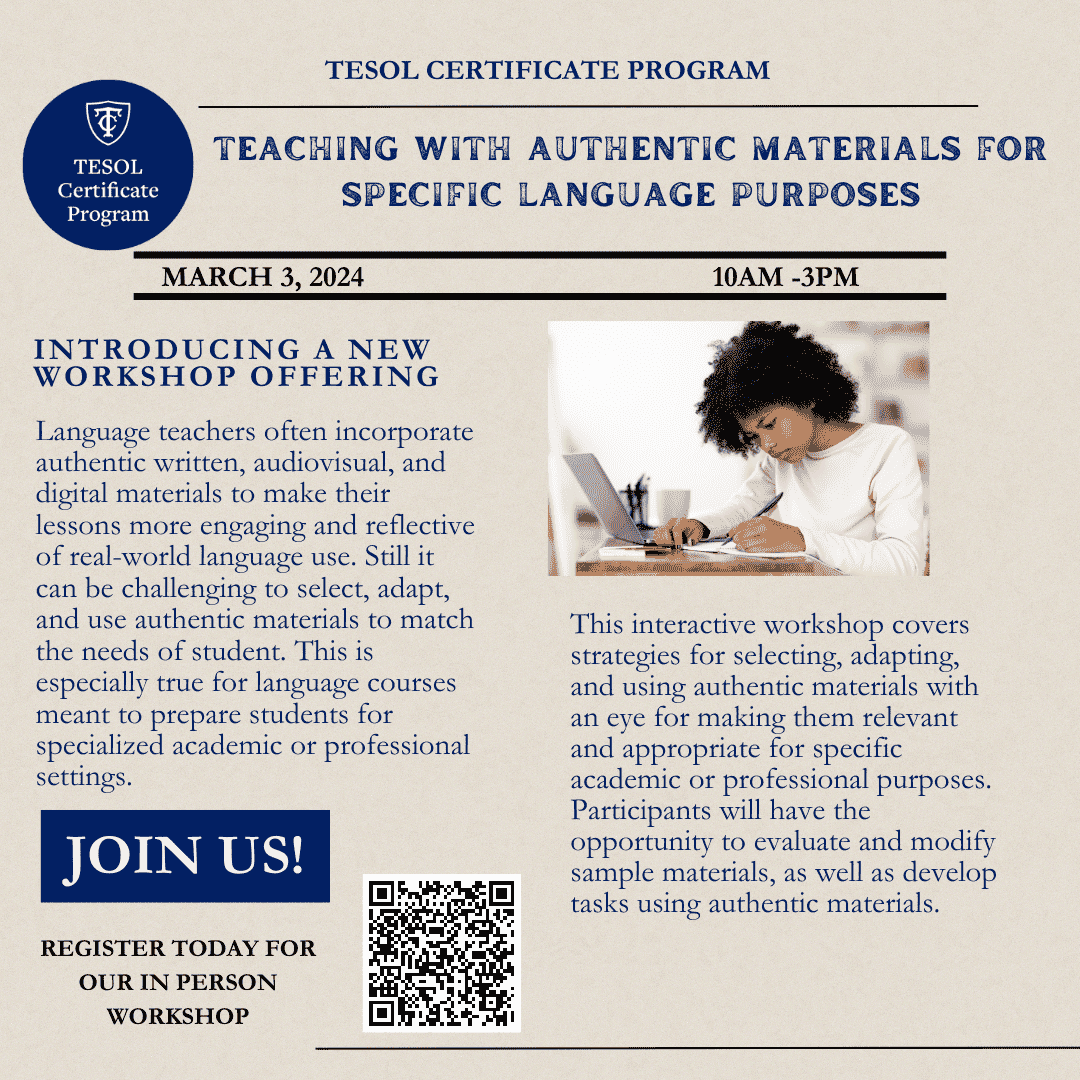 TCP Workshop: Teaching with Authentic Materials for Specific Language Purposes