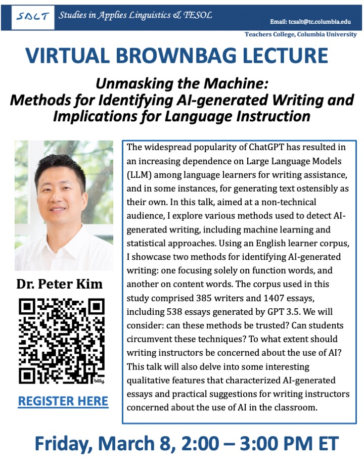 Teachers College, Columbia University Studies in Applied Linguistics & TESOL invites you to a Zoom lecture!