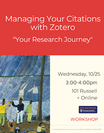 Your Research Journey is a five-part library workshop series to help guide you in your research throughout the semester, by providing you with manageable tools and resources to use along your journey. Whether this is your first time conducting research, or you are a well-seasoned researcher and looking for a refresher, each workshop introduces fundamental information to lay a foundation of knowledge on which you can build your scholarly work. While the workshops in this series are designed to build upon each other, you are welcome to attend any workshop individually. All are held on Wednesdays, 3-4pm.