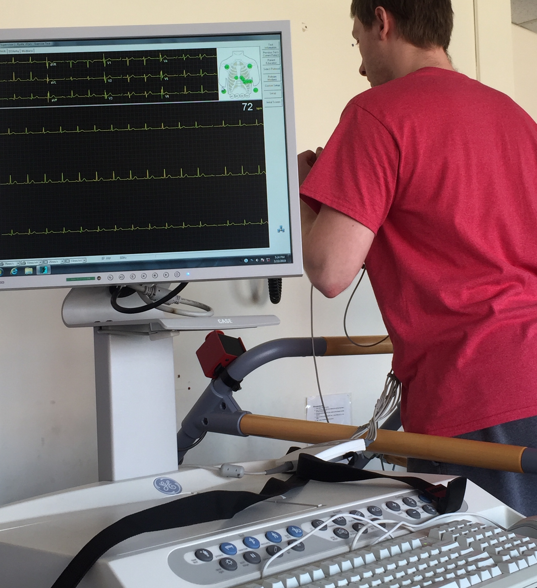 Upon your arrival, you will be asked to sit in a relaxed position, and we will be taking your resting blood pressure, and heart rate. We will place electrodes on your chest to measure your heart rate during the test. You may either be tested on a treadmill, or a stationary cycle ergometer. Both pieces of equipment can be programmed for incremental load and speeds.